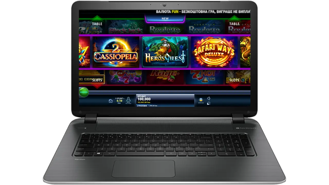 Онлайн слоти, настільні ігри, карткові ігри, колесо фортуни